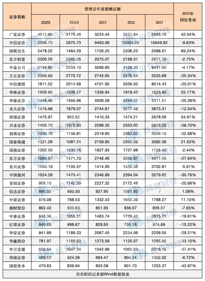 广发证券不断层薪酬超4511万,再居首位