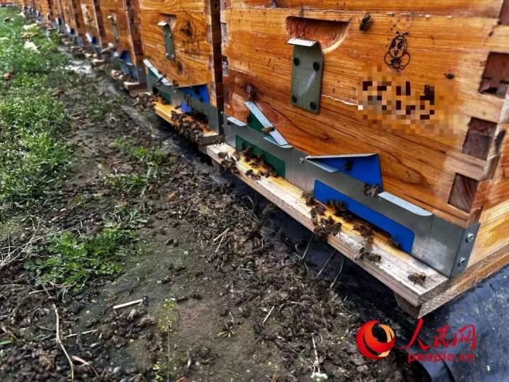 成群的死蜂在蜂箱隔邻。东说念主民网记者游天燚摄