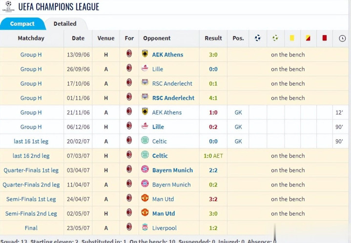 泽尔科·卡拉奇(Zeljko Kalac)。尽管在米兰卡拉奇仅仅替补门将,但06/07赛季欧冠他照旧赢得了3次出场契机,这也让他成为了最终的冠军成员之一。