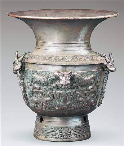 龙虎纹铜尊是这批青铜器中的精品,其原件珍藏于中国国家博物馆。此尊高50.5厘米,重26千克,口部开阔、颈部纤细、腹部鼓起、圈足较高,其造型奇异、纹饰华美,令人叹为观止。铜尊主体由3个立体龙头和3条凸起扉棱间隔为三等分。肩部装饰有3条蜿蜒于云间的龙,圆雕龙头探出肩外,每条龙身后还跟随着一条小龙。腹部的立体纹饰为3只双身老虎,张牙舞爪,口中衔着一个裸体纹身、双手上举、下肢蹲坐之人,虎身四周及圈足满布饕餮纹。专家推断“虎口衔人”图案或与古代祭祀活动存在关联。
